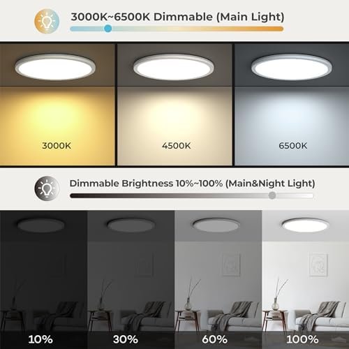 VERSATILE LIGHTING OPTIONS➤ With adjustable main light color temperature ranging from 3000K to 6500K. Experience the flexibility and versatility of our ceiling light as you customize the color temperature to suit your needs and preferences. Whether you desire a warm and cozy ambiance or a cool and refreshing atmosphere, our adjustable main light allows you to create the perfect lighting for any occasion.