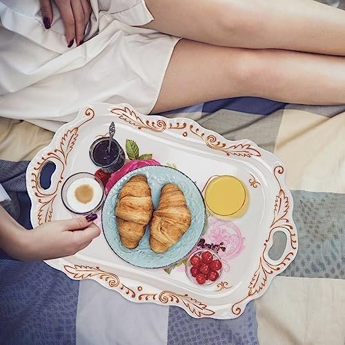 ✔【Add More Decoration for Dessert】-You can add this pretty serving tray to a house-warming gift basket for a friend, a family member, and a young couple. This breakfast tray is thick and sturdy for tea parties serving hot and cold drinks, cakes, and snacks.
