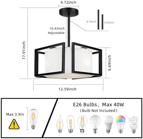 【Hight Adjustabe】1 x 6.1″ downrods plus 4.3″ downrods creates 4.3″-10.43″ adjustable hanging length, which enables this ceiling lights for bedroom to be used as a close to ceiling light fixtures or semi flush mount ceiling light ,The versatile design of this bedroom lights for ceiling allows for it to be used in different space of your home