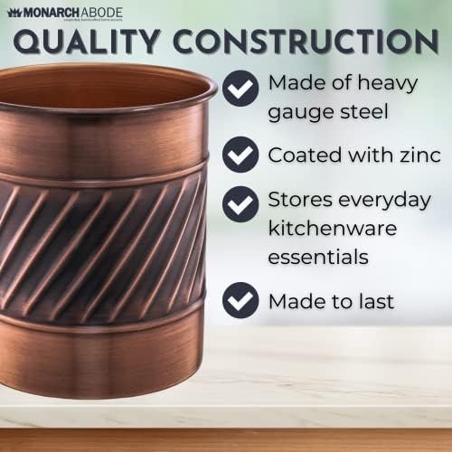 Quality constructed: Immerse your kitchen in luxury with our utensil holder, meticulously crafted by skilled artisans. Heavy gauge metal construction, coated with zinc, guarantees lasting durability. This meticulous craftsmanship results in a handcrafted wave embossed, exquisite textured finish that exudes sophistication. Elevate your kitchen’s interior with this high-quality masterpiece, marrying exceptional design with functionality.