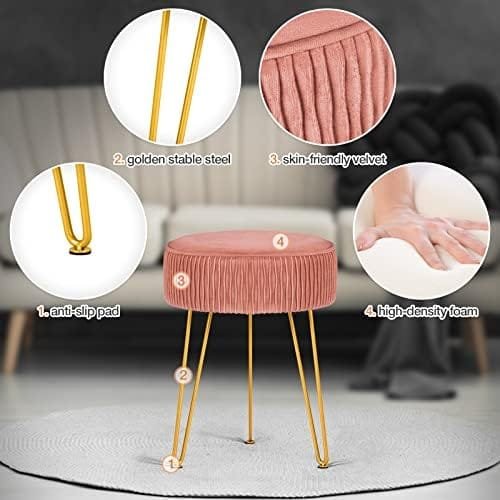 🌴Decorative Stools for Occasions 🌴- The stylish appearance with optional multiple-color and golden legs make it much more elegant and luxurious to fit your home or office decor. You can use this modern round vanity stool ottoman in various occasion, such as bedroom, living room,dressing room, children’s room, study, lounge, balcony, office, dorm, hallway and etc.