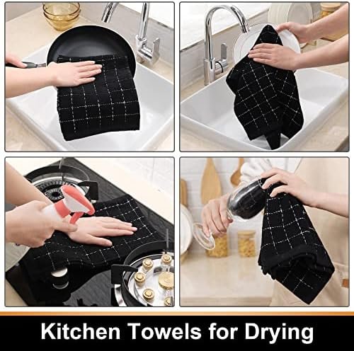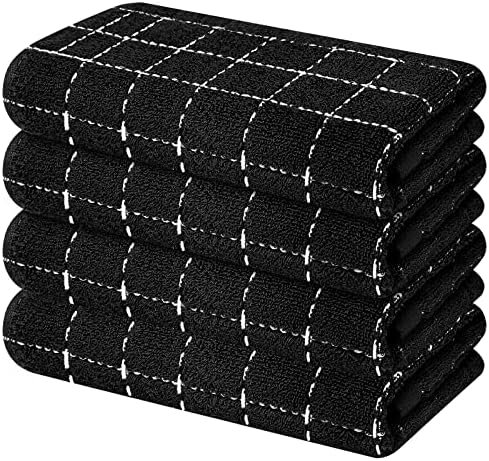 ✔Value Pack: The 4-piece of 16 x 26 inches cotton kitchen tea towels can be conveniently hung in front of cabinets and microwaves for drying and easy access when you need it