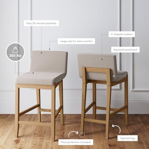 This C-shaped cushion counter chair and tapered legs can carry up to 300 lbs