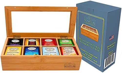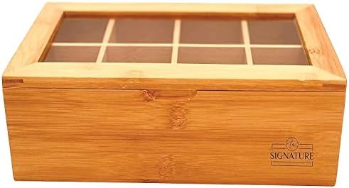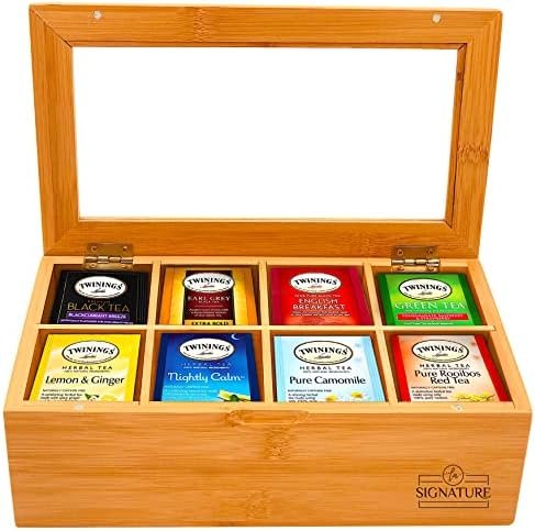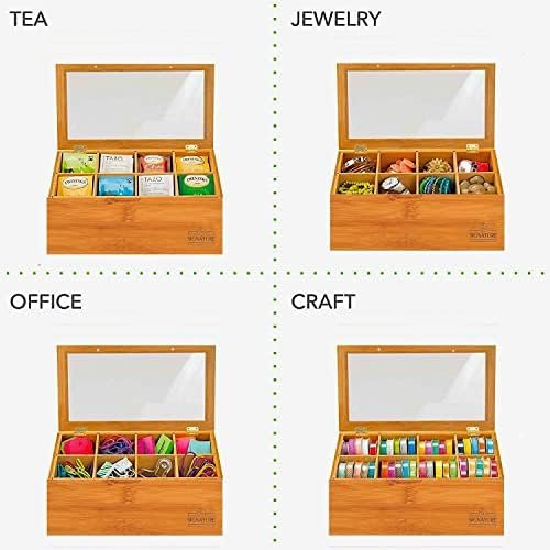 Natural Bamboo Tea Box Storage Organizer- 8 Compartments Tea Bag Holder with Clear Acrylic Window- Natural Wooden Finish Tea Storage Organizer