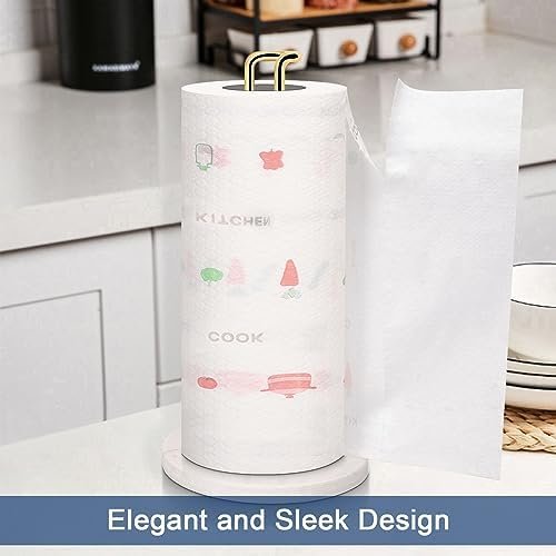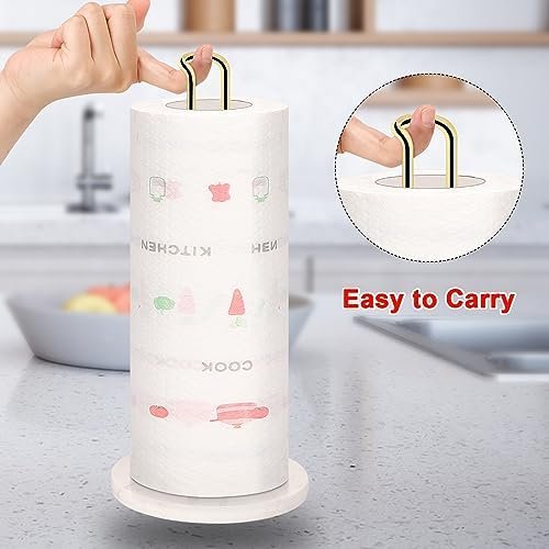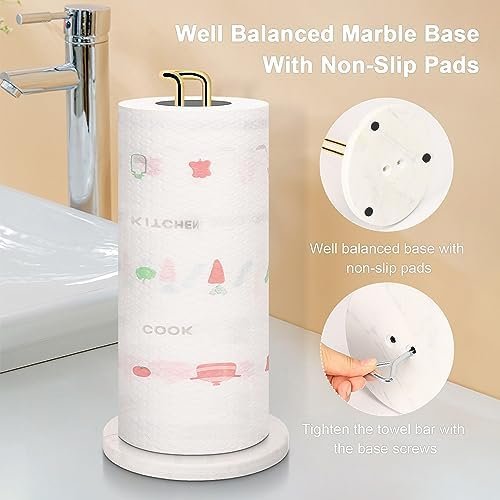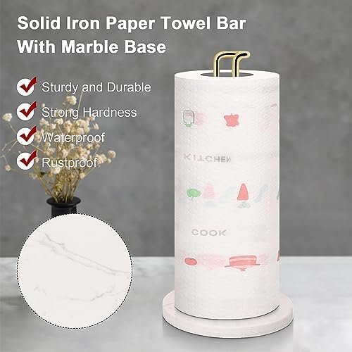NearMoon Paper Towel Holder Countertop, Sturdy Kitchen Paper Towel Stand Dispenser-All Metal, Standard or Jumbo-Sized for Kitchen Countertop,Farmhouse, Living Room (Marble Base, Gold)
