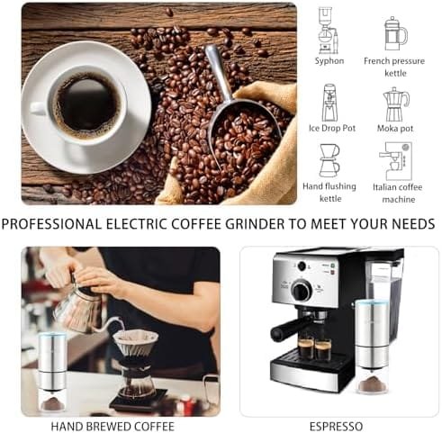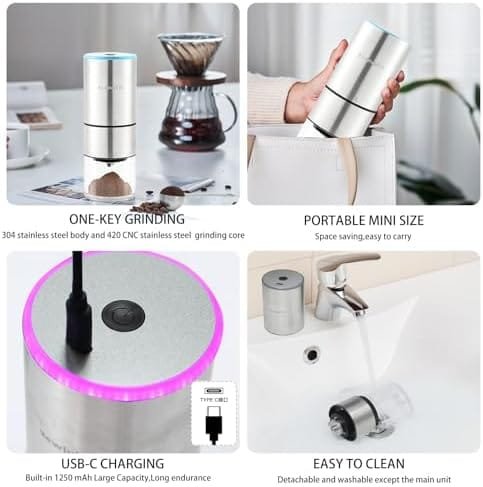 Durable & Disassemble :This cordless burr grinder has 304 stainless steel body with CNC 420 burr grinding core,which is sturdy and durable for customizable grind.It’s easy to clean the detachable body & food-grade transparent powder bin.