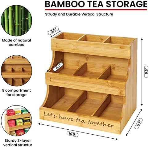 -Space Saving And Practical : Keep your kitchen neat, clean, and organized when serving guests or making yourself a cup of tea. The vertical storage is a unique way to display and store all your tea bags to avoid rummaging through cabinets and drawers,suring maximum space efficiency whether it is on the kitchen counter, café bar counter or inside your pantry shelf. No assembly is required, so just unpack and use right away!