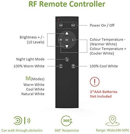 Adjust brightness (0%-100%) and color temperature (3000K-6500K) with RF remote controller, which can penetrate walls, doors and cabinet, much more convenient.