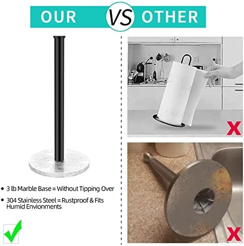 【Without Rust and Tipping】304 stainless steel material with a durable anti-rust finish. Heavy weighted natural marble 3 lbs base can keep paper towels holder sturdy from tipping. Notice: The base is made of natural marble featuring in a wide variety of colors and patterns.
