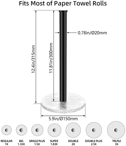 【Thoughtful Design Size】Kitchen paper towel holder countertop, height 12.4 inches, diameter of the marble base: 5.9 inches. suitable for all standard and large size paper towels.