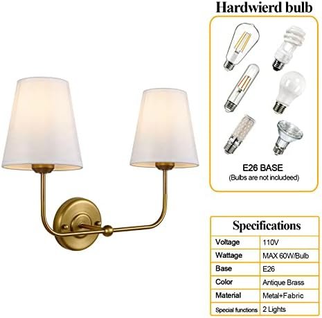 Minimalistic design: The industrial wall lamp feature sleek lines and an elegant appearance.This wall light fixtures features a unique antique brass finish lamp pole and two white hand woven lampshade,adding a touch of simple and stylish flair to your space. The wall lamp is made of high-quality materials and exquisite craftsmanship, ensuring durability and aesthetics.