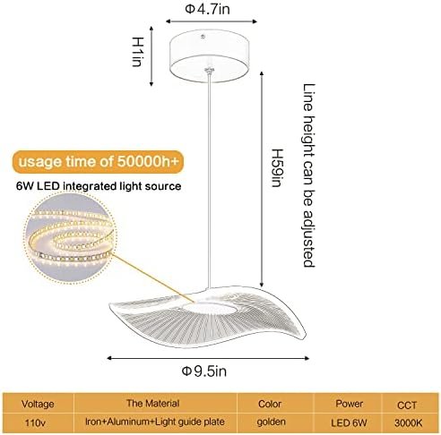 LED Light Source – The pendant light includes one LED light source, Voltage 110V, power: 6w, saving 75% energy compared to traditional light sources ,The light source can be used for over 50000 hours