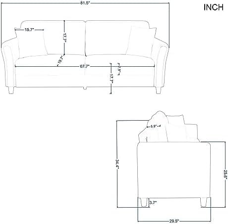 【Sofa DImension】Compressed back cushion & seat cushion. Please rebound 72 hours after opening the package for your perfect use. Overall Sofa Size: 81.5”L x 29.5”W x 34.4”H. The loveseat comes with assembly instructions, allowing for quick and easy installation.