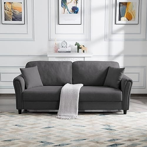 【Sofa Use】Back cushions and 2 toss pillows covers are removable and washable. This Linen Fabric Comfy Couches Sofa easy to maintain, suit for Living Room, Bedroom, Compact Small Space, Apartment, Office.
