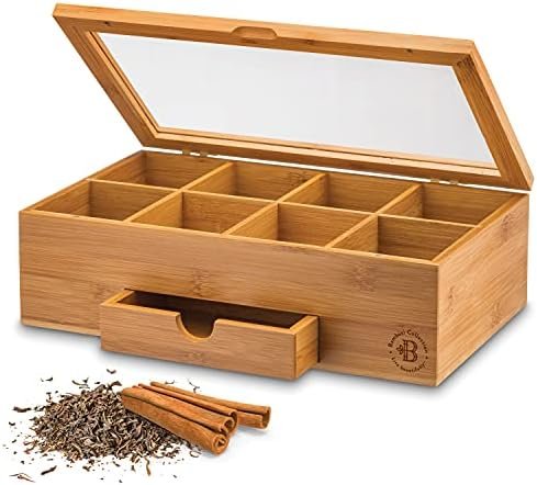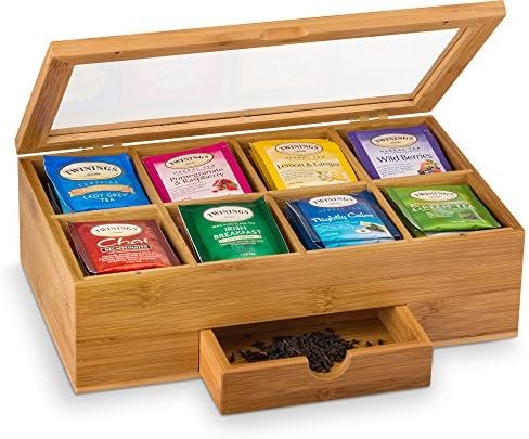 Organize Your Teas: Clean up your kitchen with this tea storage box. With 8 compartments, it’s perfect for all your tea bags. Plus, the slide-out drawer is great for extra tea accessories, caddies, or even bandaids