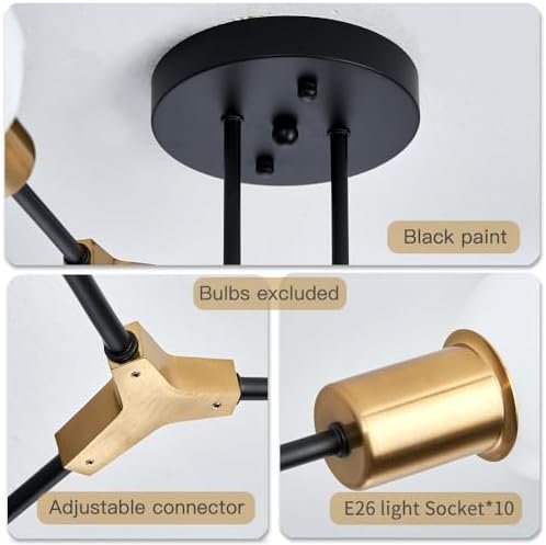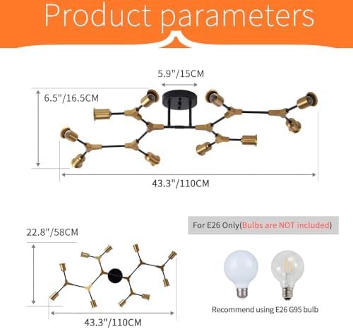 ➤【Bulbs and Dimmability】This Close To Ceiling Lights has ten standard E26 sockets, and each bulb can have a maximum of 40 watts. Please note that the bulbs are not included in the package. For adjustable brightness, use dimmable bulbs and a compatible dimmer switch.