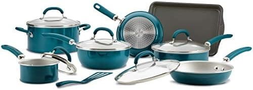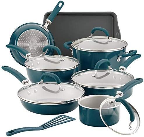 Rachael Ray Create Delicious Nonstick Cookware Pots and Pans Set, 13 Piece, Teal Shimmer