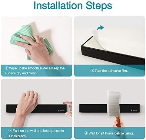 【EASY TO INSTALL】First, tear the protective film on the back of the magnetic knife holder strip, then stick it on the wall. Note that you need to wait 24~48 hours after installation before you can start using it.