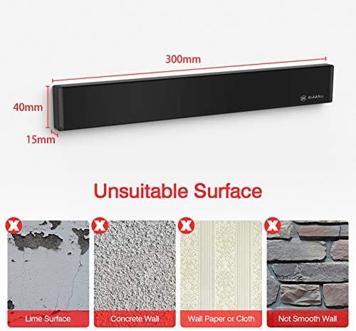 【APPLICATION】This magnetic knife holder for wall no drill is suitable for smooth surfaces such as tiles, glass surfaces, and smooth metal surfaces. Do not need to destroy tiles, glass or metal surface.