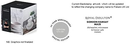 Marking the 10th Anniversary of Gordon Ramsay’s popular collaboration with Royal Doulton, a light grey glaze is a key feature of the 10″ Maze Serving Bowl. The embossed concentric circles focus attention on the delicious cuisine being served and Gordon’s aim is for this collection, with its wide range of pieces in an assortment of colors to be the perfect choice for laid back dinner parties or casual lunches. He believes food should be about having fun and relaxing in the company of family and friends, so the Maze collection includes not only this serving bowl, but other perfectly proportioned key pieces crafted by Royal Doulton in durable yet lightweight stoneware. These are well suited to serving his signature one-dish, colorful recipes which include Leek and Prawn Gratin or Risotto of Spring Vegetables, so, for a little chef-inspired home entertaining the Gordon Ramsay Maze collection provides everything you need. Key Features: • Generous 10″ Serving Bowl, perfect for Chef Ramsay’s Leek and Prawn Gratin or Vegetable Risotto • Design inspired by the relaxed and contemporary tone of Ramsay’s London restaurants • Dishwasher and microwave safe • Rigorously tested for chip resistance