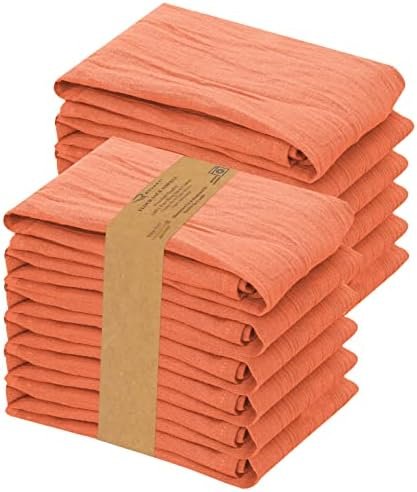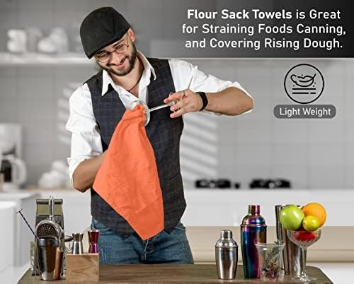 RUVANTI Flour Sack Towels 12 Pack 28×28 Inch, 100% Cotton Tea Towels, Reusable Kitchen Towels, Machine Washable, Absorbent Bar Towels – Dish Cloth Perfect for Drying Dishes & Cleaning – Orange