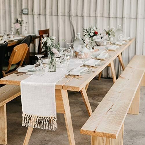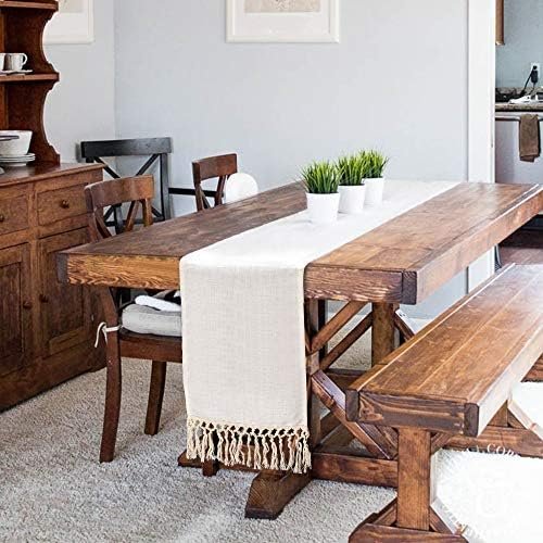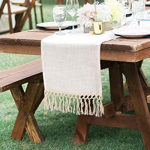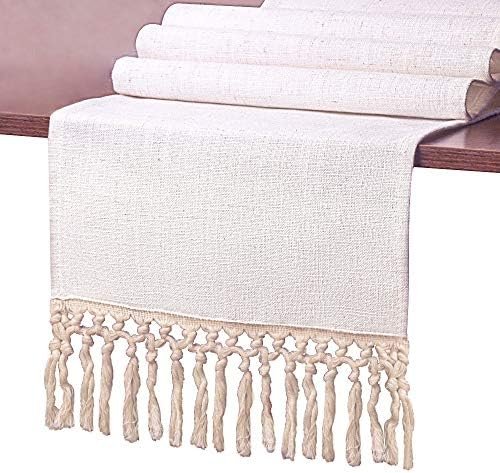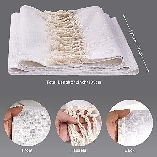 SevenFish Farmhouse Table Runner Natural Cotton Woven Boho Table Runner with Tassels for Bohemian Wedding Bridal Shower Birthday Party Rustic Home Dining Table Decor, 12 x 72 Inches Long