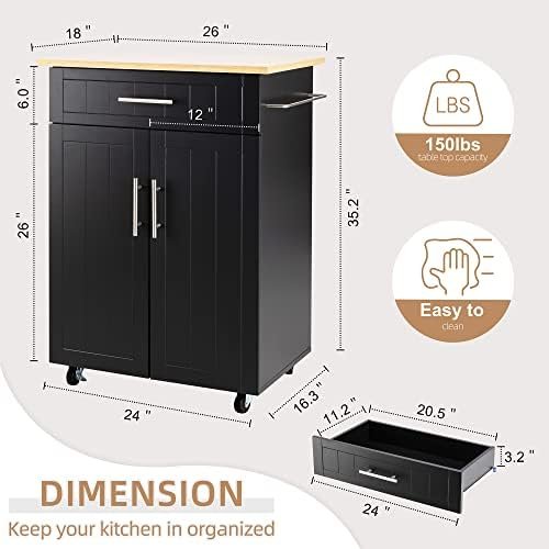 High Quality Material :Our kitchen island is made of high-quality solidwood board and sturdy structure for longer using. The tabletop (26″L x 18″W) offers you an ample platform to cook or operate. Smooth surface for easy cleaning. The installation is simple and direct, all tools needed will be provided.