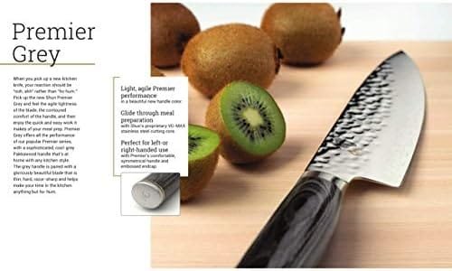 When you pick up a new kitchen knife, your reaction should be “ooh, ahh” rather than “ho hum.” Pick up the new Shun Premier Grey and feel the agile lightness of the blade, the contoured comfort of the handle, and then enjoy the quick and easy work it makes of your meal prep. Premier Grey offers all the performance of our popular Premier series, with a sophisticated, cool-grey Pakkawood handle that’s at home with any kitchen style. The grey handle is paired with a gloriously beautiful blade that is thin, hard, razor-sharp and helps make your time in the kitchen anything but ho-hum.