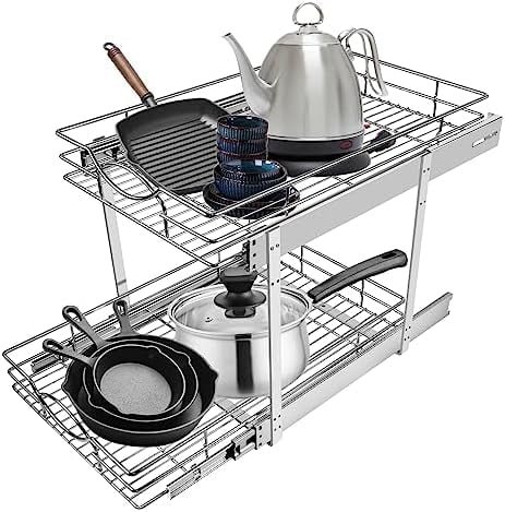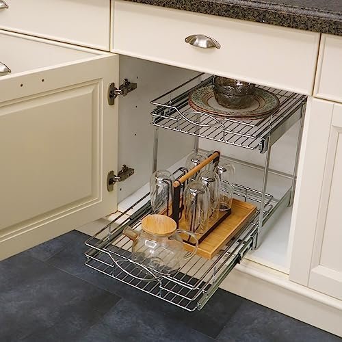 Sikarou Pull Out Cabinet Organizer 11″ W x 21″ D 2-Tier Individual Slide Out Drawer Pantry Shelf Storage for Kitchen Base Cabinet Organization ​for Kitchen, Bathroom, Pantry, Chrome