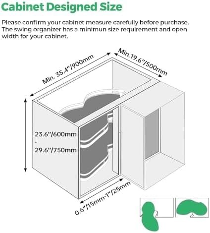 Smooth and Silent Operation: Pull Out Corner Cabinet Organizer has a hydraulic soft-closing device, which ensures smooth and silent operation. The addition of a non-slip mat protects kitchen items from slipping and adds to the ease of cleaning. The independent swing-out tray design prevents objects from tilting, and when you’re finished, just push it back and it self-closes.