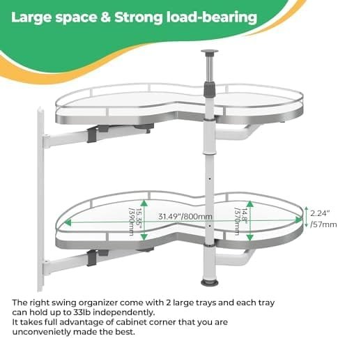 The blind cabinet pull out organizer can easily access items with two layer. This organizer has 2 large trays, each with a weight capacity of 33 pounds. The shelf is independent, making it convenient to store and take; each shelf can be fully or partly pulled out.
