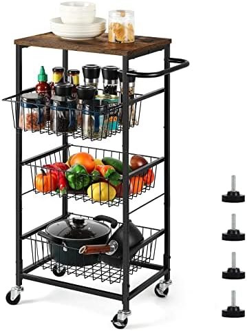 【Easy to Assemble】The package comes with all hardware tools you need and a detailed manual, it’s very easy to install this small kitchen cart. 4 adjustable rubber feet can be replaced with universal wheels(2 are lockable) according to your usage needs.