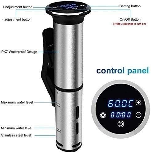 Welcome to my store, will provide you with quality service This way of cooking will create the most amazing and life changing steaks, chicken, fish, veggies, and virtually anything you toss into it. Power: 1200W Weight: 1.6kg Packing size: 43.3 * 16.2 * 9.4CM How to Use: Sous Vide circulator requires a 6-15L round,rectangular or other different container or pot.Firmly lock the product by clamping it on the side of your container. Cleaning the Sous Vide Circulator: For cleaning the heating coil,pump shaft,and sensors,use dish soap,soft booth brush and rinse under water.Do not rinse the top part of trhe circulator including the main body in water. SERVICE POLICY : We will take care of every customers problem. If you have any questions, please do not hesitate to contact us. We will reply within 24 hours. wish you a happy life!