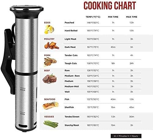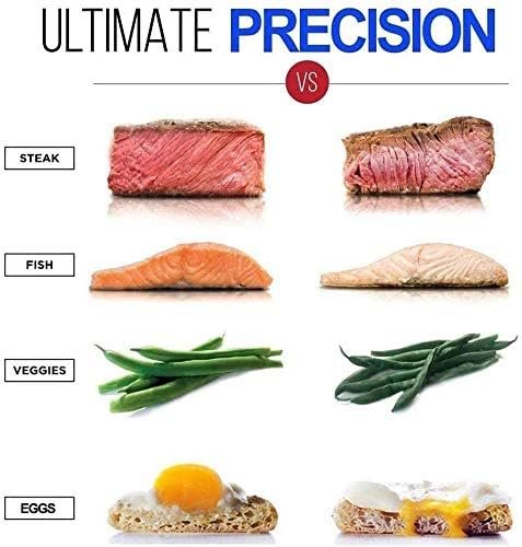 Easy to Use and Clean -Simply attach the cooker to any pot, add water, placed your ingredients in a vacuum sealed bag or glass jar. Start cooking with the touch of a button on the device. The cooker’s detachable stainless steel skirt and disks are dishwasher safe making this kitchen appliance easy to clean and maintain.