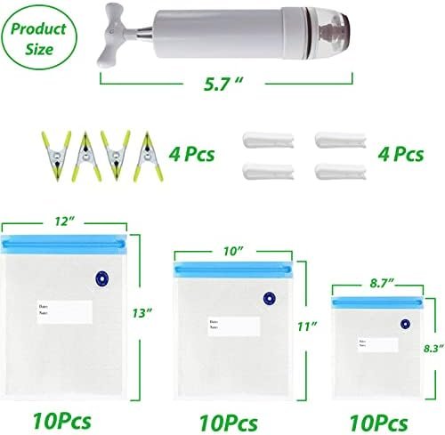 【Easy to Use】You just place your food items in the reusable food storage bag,seal the top with the clips provided,then attach the pump on the air valve pump it up and down until the air has been removed from the bag. After use, simply wash bag with dish soap and water and store it to dry before your next use.