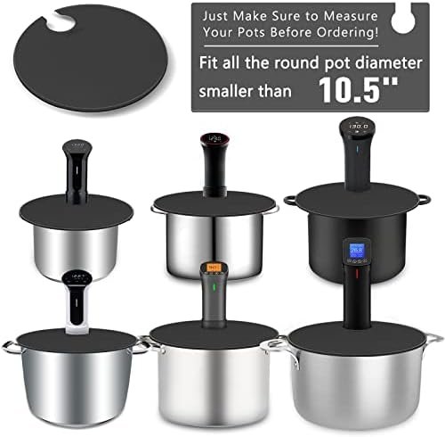 For standard 10 1/2″ pot: The lid sits slightly forward on one side without any gapping, so will fit a 10 1/2″ size and anything smaller.Adds versatility to types of containers used in Sous vide cooking. Make sure you measure your pot before buying it.