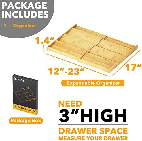 NO ASSEMBLY NEEDED – Our bamboo spice drawer organizer comes fully assembled and easy to use; Expandable from 12″ to 23″ wide that can fit in different drawers