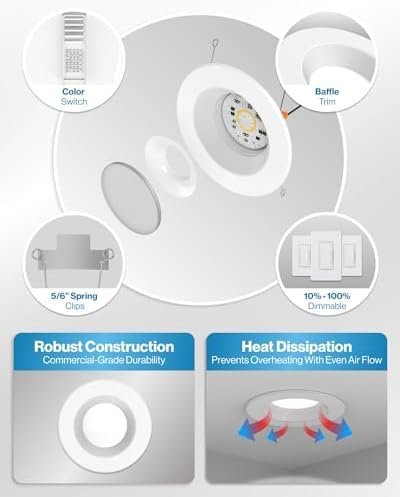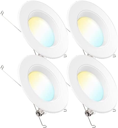 Sunco 4 Pack 5CCT Retrofit LED Recessed Lighting 6 Inch, 2700K/3000K/3500K/4000K/5000K Selectable, Dimmable Can Lights, Baffle Trim, 13W=75W, 965LM, Damp Rated – Energy Star