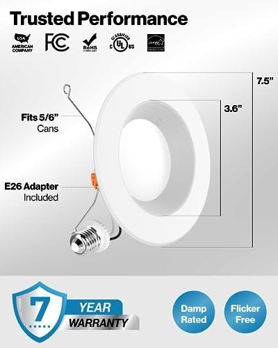 Be the first to review “Sunco 4 Pack 5CCT Retrofit LED Recessed Lighting 6 Inch, 2700K/3000K/3500K/4000K/5000K Selectable, Dimmable Can Lights, Baffle Trim, 13W=75W, 965LM, Damp Rated – Energy Star”