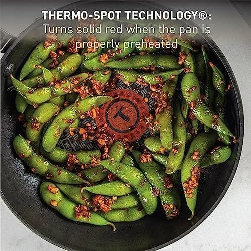 Thermo-Spot Technology: Unique heat indicator turns solid red when pans are properly preheated so you’ll know exactly when to start cooking for perfect results every time.