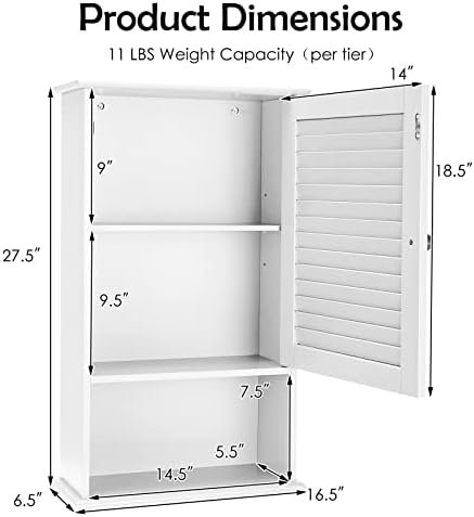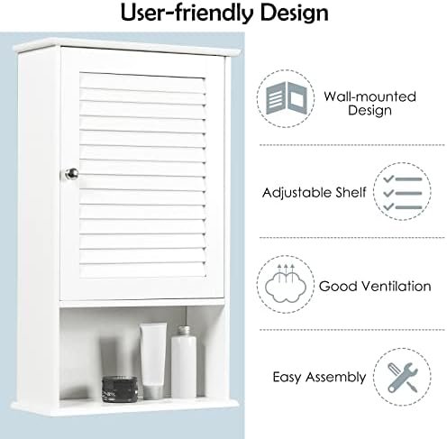 【Moisture Proof Design】 Tangkula medicine wall cabinet is using a painted process that is waterproof and moisture resistant. Suitable for humid environments, such as bathrooms or toilets. . And shuttered door design not only to keep it clean and organized ,but also promote air circulation. It is a ideal option for you.
