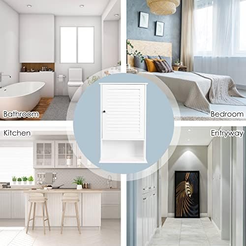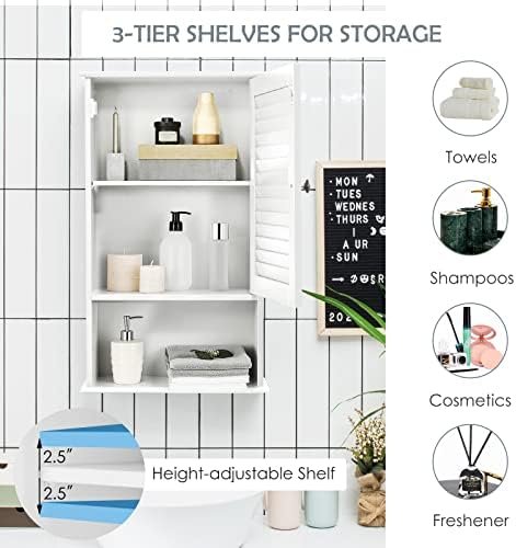Tangkula Medicine Cabinet, Wall Mounted Bathroom Cabinet Single Door Wooden Bathroom Wall Cabinet with Adjustable Shelf