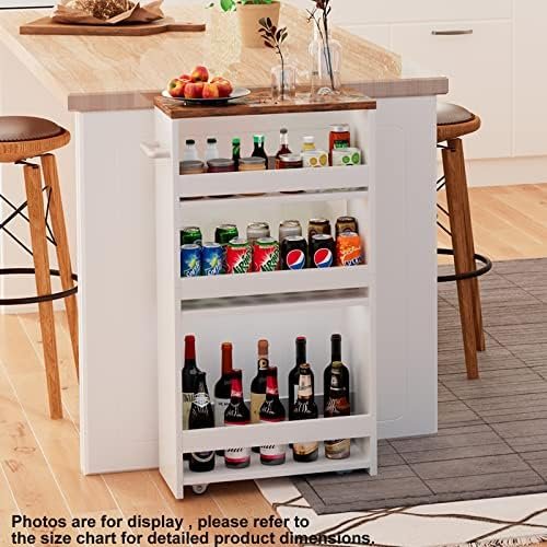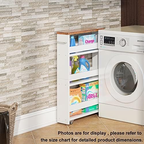 TEAMIX 4 Tier White Slim Storage Cart with Handle, Slide Out Storage Rolling Utility Cart Mobile Shelving Unit Organizer Trolley for Small Spaces Kitchen Laundry Narrow Places