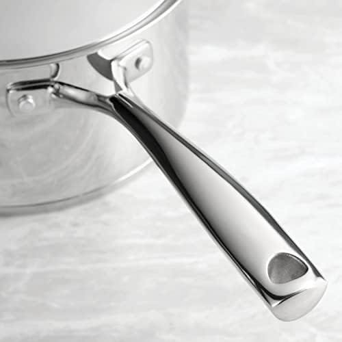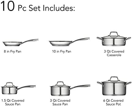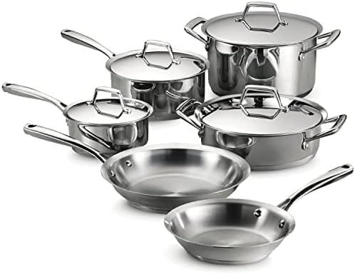 Tramontina’s Prima cookware line provides exceptional performance combined with the impeccable beauty, durability and quality of stainless steel. Its base is impact-bonded with three layers, consisting of 18/10 stainless steel, an aluminum core for conductivity, and magnetic stainless steel, which distributes heat quickly and evenly without hotspots, and makes the line perfect for induction-ready cooktops. As an added detail, its sleek, modern lines feature a flared edge for easy pouring. The premium stainless steel construction allows you to use this cookware on a cooktop, in the oven, and under a broiler.