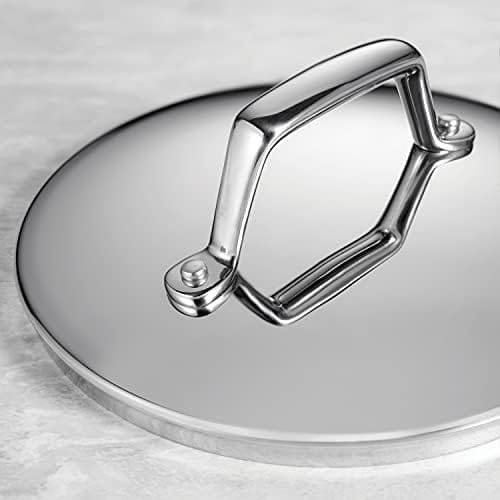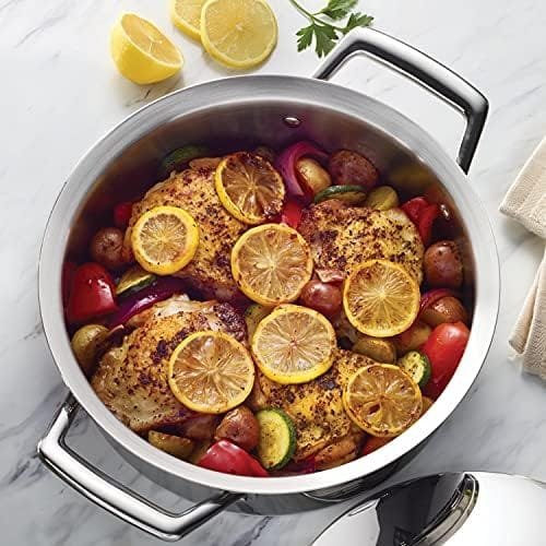 Tramontina’s Prima cookware line provides exceptional performance combined with the impeccable beauty, durability and quality of stainless steel. Its base is impact-bonded with three layers, consisting of 18/10 stainless steel, an aluminum core for conductivity, and magnetic stainless steel, which distributes heat quickly and evenly without hotspots, and makes the line perfect for induction-ready cooktops. As an added detail, its sleek, modern lines feature a flared edge for easy pouring. The premium stainless steel construction allows you to use this cookware on a cooktop, in the oven, and under a broiler.