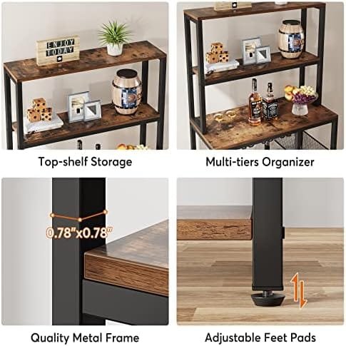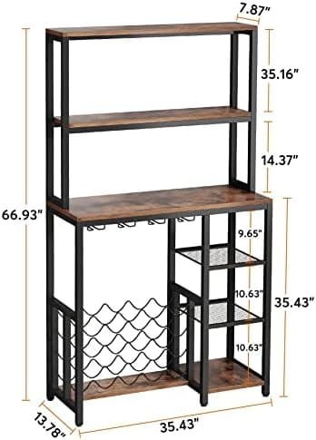 【Quality Assured】:This baker rack with wine storage made of top-grade engineered wood shelves and a heavy duty metal base ensure its durability for many years using. Aiming to realize maximum stability, we added an additional board under the bottle holders and provided adjustable feet which prevent this bakers rack with storage from unevenness and wobbliness.