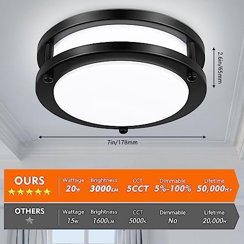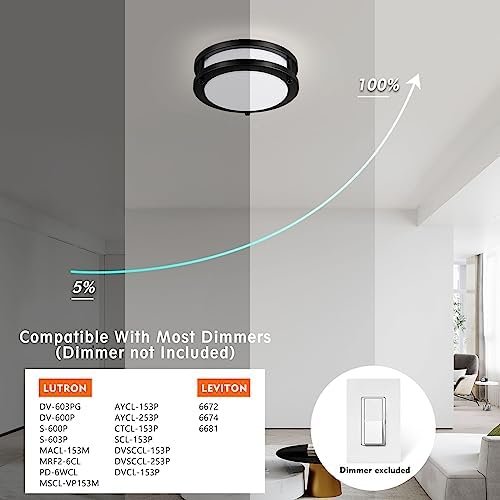 🎁【Dimmable Ceiling Lamp】Our LED ceiling light fixtures offer seamless dimming capabilities, allowing you to adjust the brightness from 5% to 100% according to your specific needs. Whether you desire a cozy ambiance or full illumination, these lights provide effortless customization for any occasion. They are compatible with most dimmer(not included) in market and we also list some recommended models in our image.