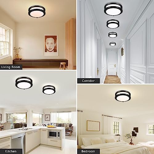 🎁【Simple Design & Wide Application】With its sleek 2.6-inch thickness and minimalist line design, this close to ceiling light offers a space-saving solution that exudes a clean and contemporary aesthetic. Its classic black finish adds a touch of uniqueness, perfectly complementing the overall modern flair. It is an ideal lighting choice for various spaces such as bedrooms, living rooms, bathrooms, hallway closets, stairwells, and more.