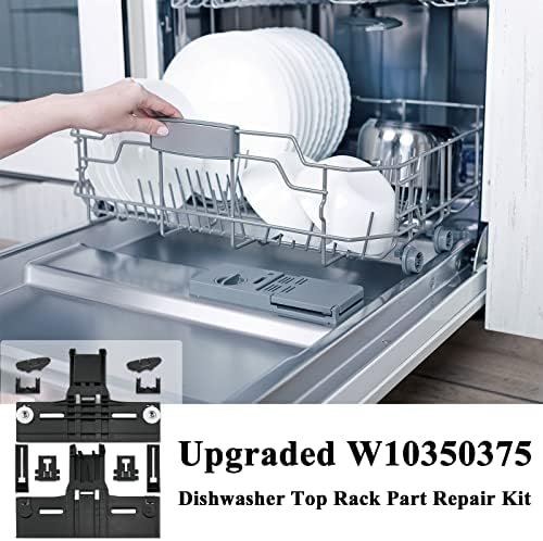 COST-EFFECTIVE GOODS – Package includes 2 x W10350375 Dishwasher Top Rack Adjuster, 2 x W10195840 Dishwasher Positioner, 2 x W10195839 Dishwasher Rack Adjuster, 2 x W10250160 Dishwasher Adjuster Arm Clip-lock, 2 x W10508950 Dishwasher Dishrack Stop. These dishwasher top rack parts for whirlpool are able to fix the most common issues effectively as following: ①dishwasher not washing properly ②dishrack will not pull out or push in ③dishrack is not level