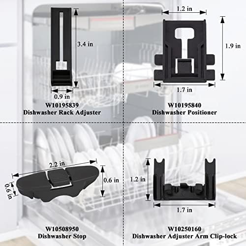 PERFECT REPLACEMENT – ① W10350375 dishwasher top rack adjuster replaces W10712395, AP5957560, W10712395VP, 3516330, EAP10065979, PS10065979; ②W10195840 dishwasher positioner replaces 1872228, AH3407016; ③W10195839 dishwasher rack adjuster replaces WPW10195839, AP6016799, PS11750092; ④W10250160 dishwasher adjuster arm clip lock replaces WPW10250160, AP6017800, PS11751100; ⑤W10508950 dishwasher dishrack stop replaces 8562015, W10199682, W10508950, WPW10508950VP, 2684662, AP6022472, PS11755805